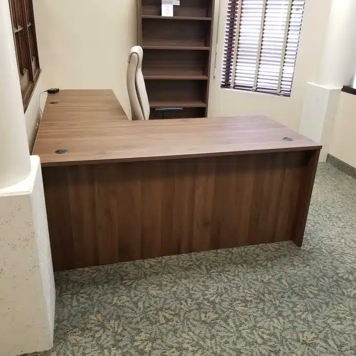 This modern Bellagio L-Shaped Office Desk offers plenty of space and features to create an ideal workspace. With a 36"x71" size and impressive anchor design, it provides increased organization, productivity, and efficiency. Perfect for home and commercial office use.